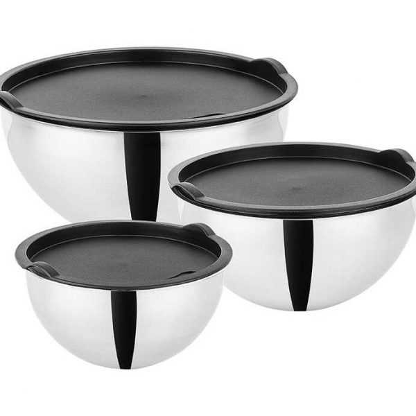 3LÜ SİYAH KAPAKLI PASLANMAZ ÇELİK KARIŞTIRMA VE SAKLAMA KABI SETİ 16-20-24CM