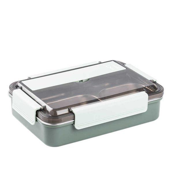 TEDEMEI YEŞİL PASLANMAZ ÇELİK KAŞIK VE CHOPSTICKLİ YEMEK TAŞIMA KABI 1L