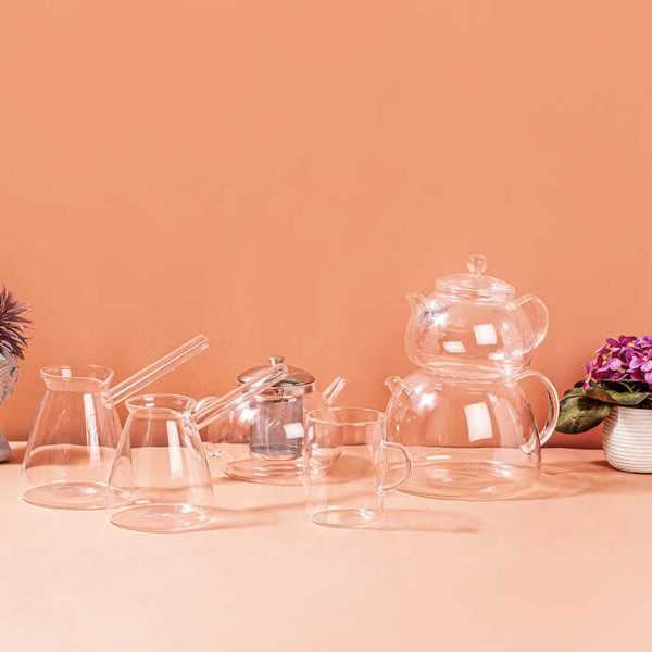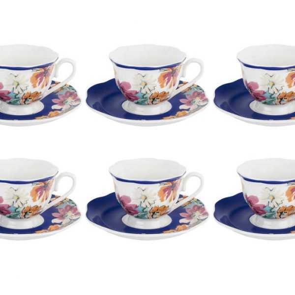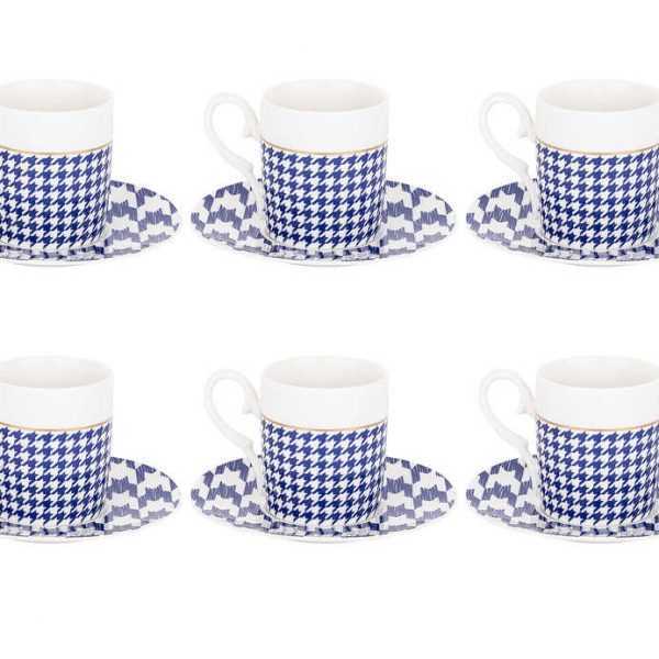 CAM MİNT YALDIZ KANAVİÇE DESENLİ 12 PARÇA ÇAY SETİ
