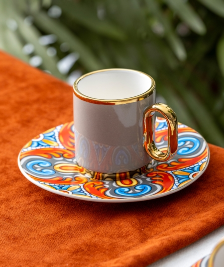 2Lİ RENKLİ ETHNIC NEW BONE KAHVE FİNCAN TAKIMI