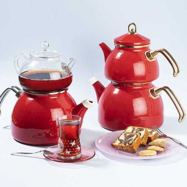 KIRMIZI GOLD EMAYE ÇAYDANLIK TAKIMI 1200ML/2300ML