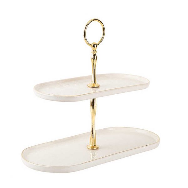 REACT KREM RENGİ GOLD YALDIZLI İNCE SERAMİK 2KATLI KURABİYELİK 26CM