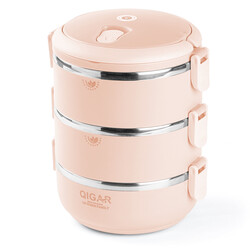 3 KATLI YUVARLAK PEMBE PASLANMAZ ÇELİK YEMEK TAŞIMA KABI 2.1L