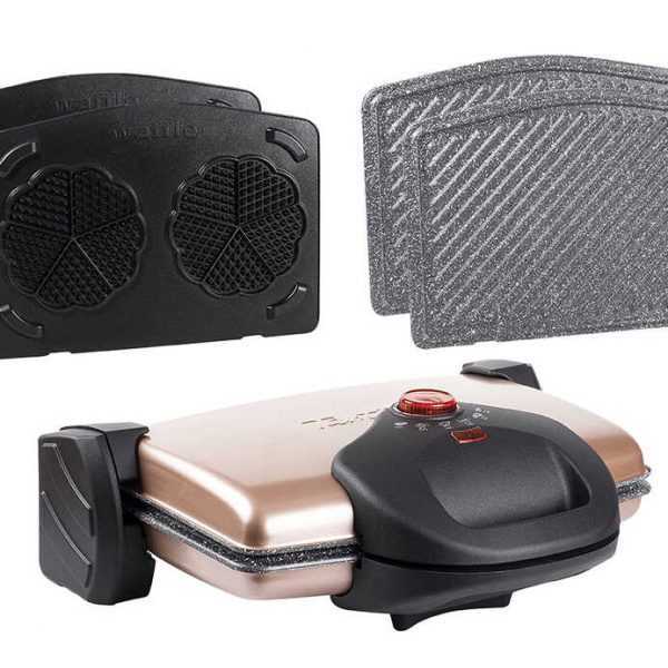 GRANİT WAFFLE VE DÜZ PLAKALI ROSE GOLD IZGARA VE TOST MAKİNESİ